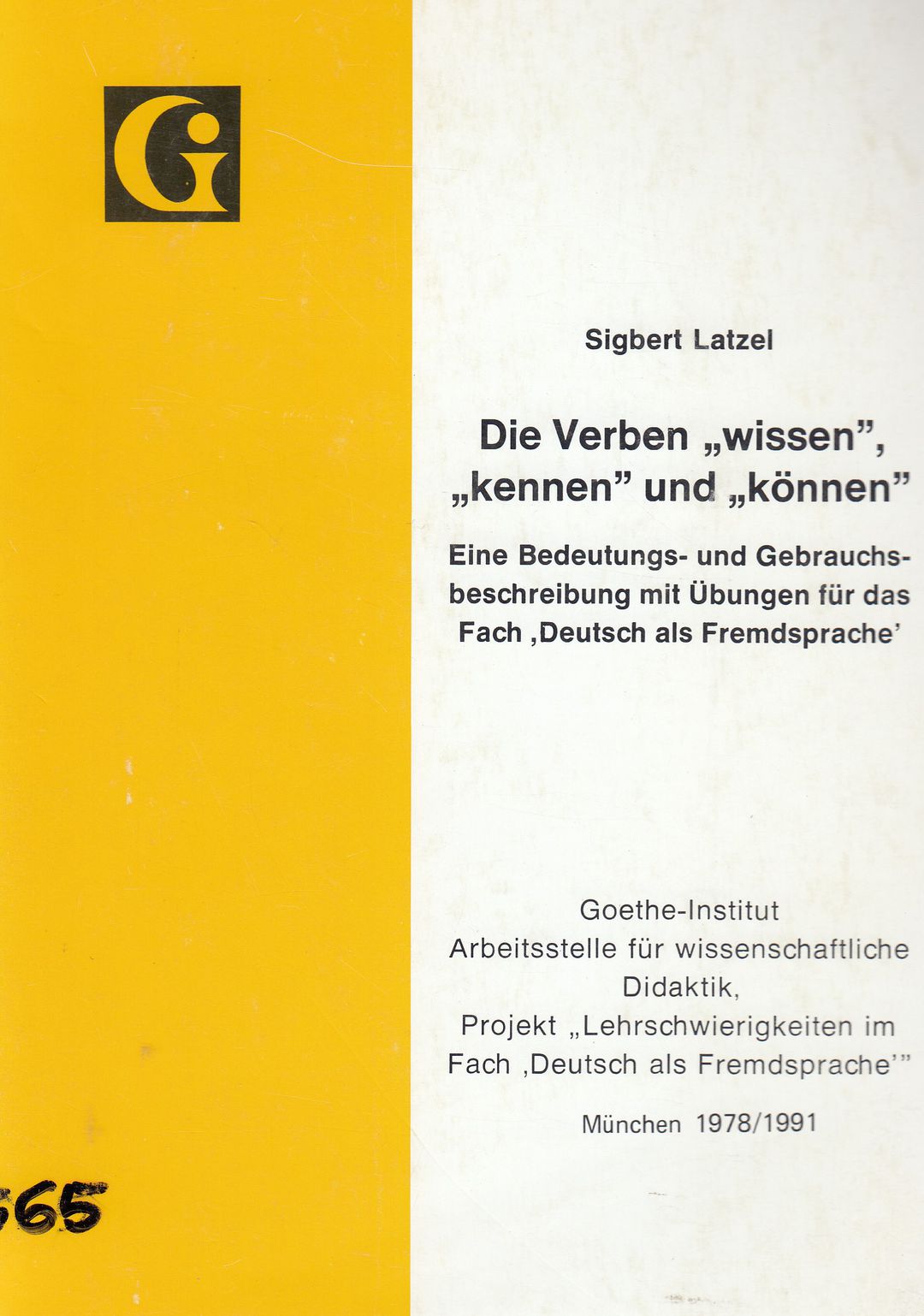 (Publikationen der Projektgruppe "Lehrschwierigkeiten im Fach 'Deutsch als Fremdsprache'" Nr. 1)